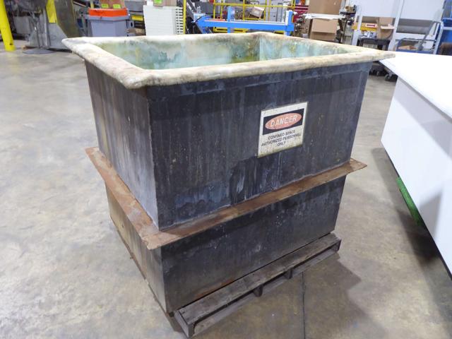 2" Inlet / Outlet.\n\nRubber liner in great condition.\n\nOAD: 41"L x 36"W x 60"H\n\n3" Overlfow at top drain.\n\n